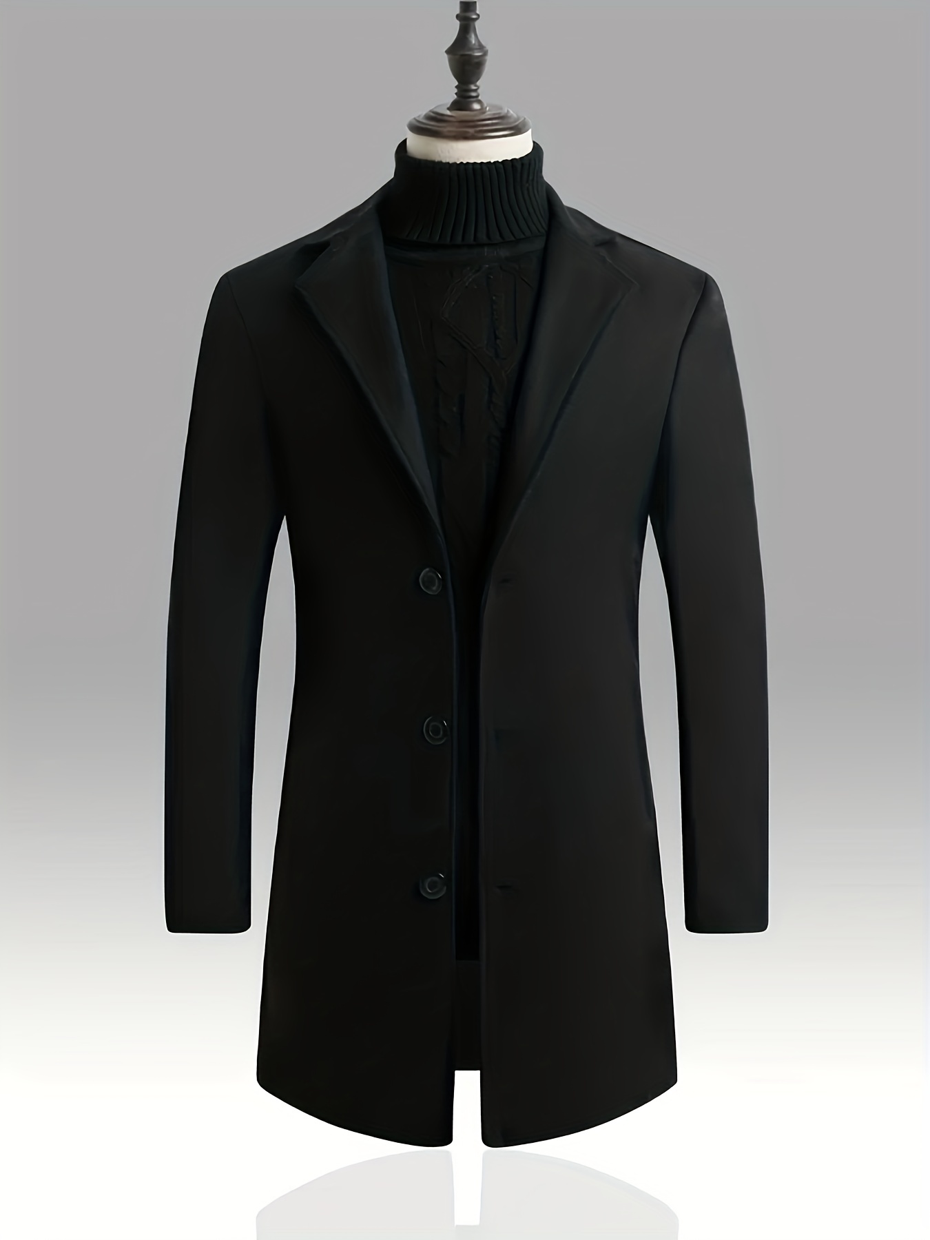 Men's Trench Coat, Lapel Collar Mid Length Single Breasted Overcoat, Winter Warm Business Jacket