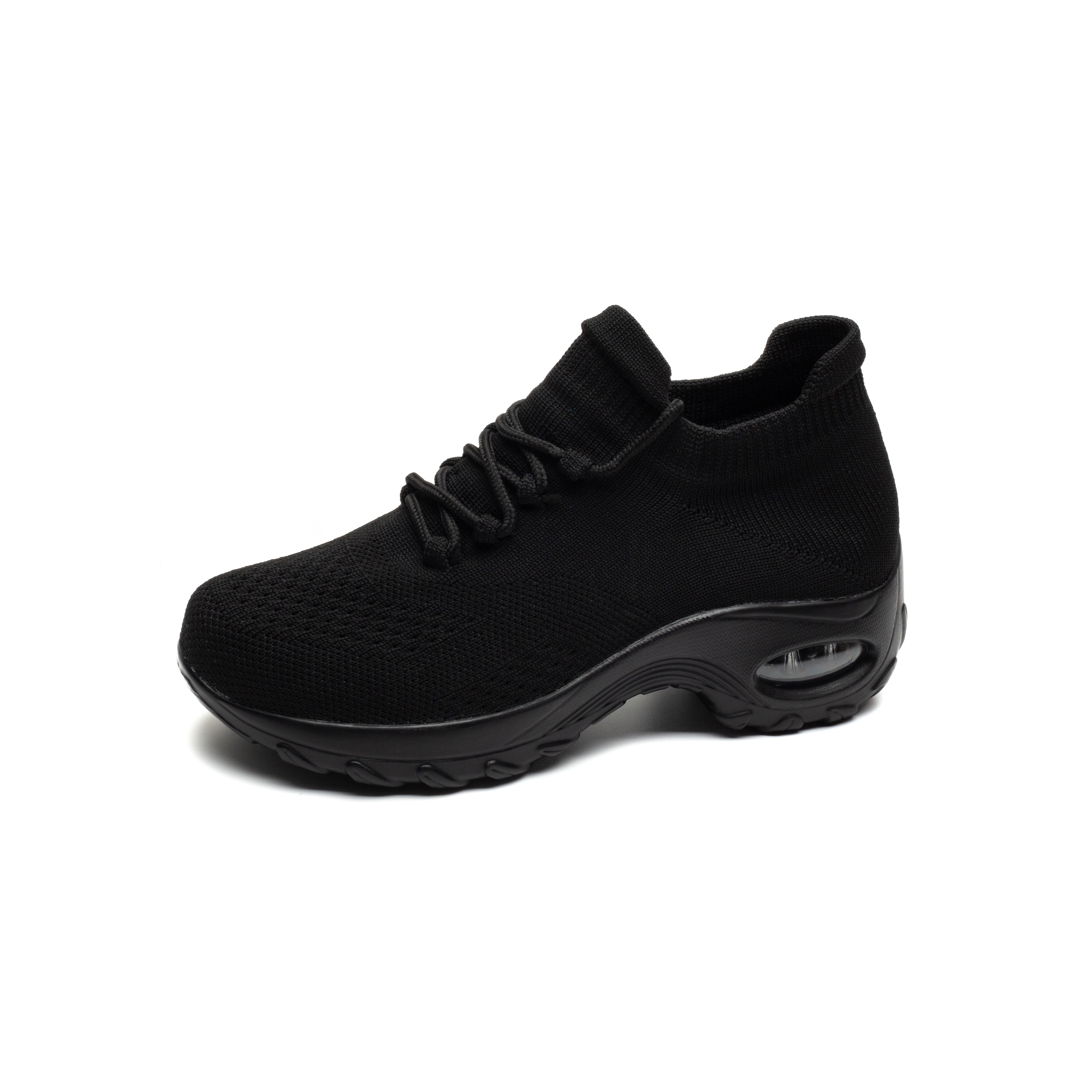 Women's Breathable Knit Chunky Sneakers, Casual Lace Up Air Cushion Shoes, Women's Hiking Sock Shoes