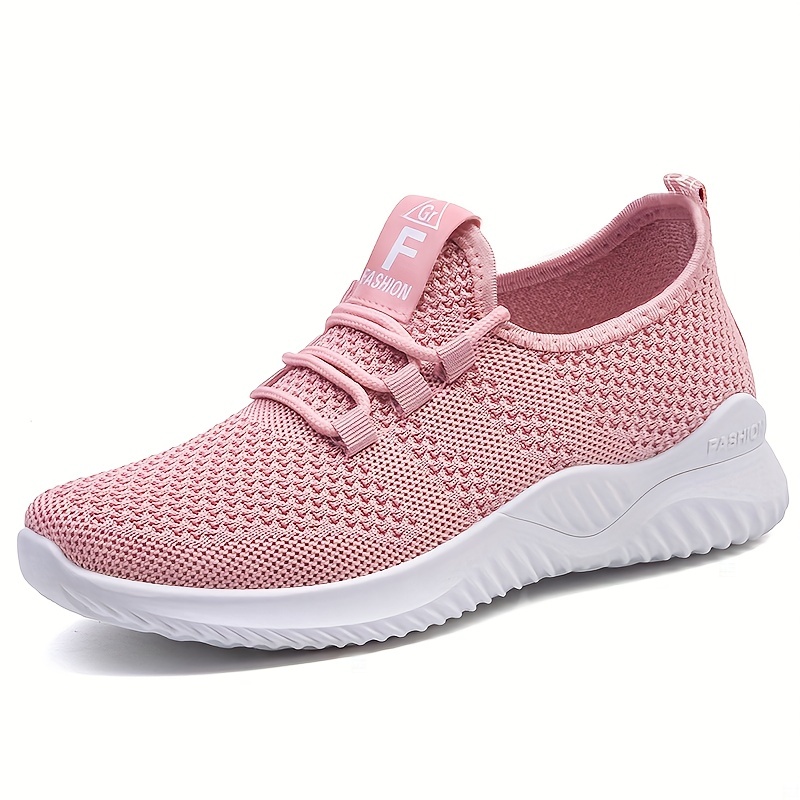 Women's Breathable Knit Sneakers, Casual Lace Up Outdoor Shoes, Lightweight Low Top Running Shoes