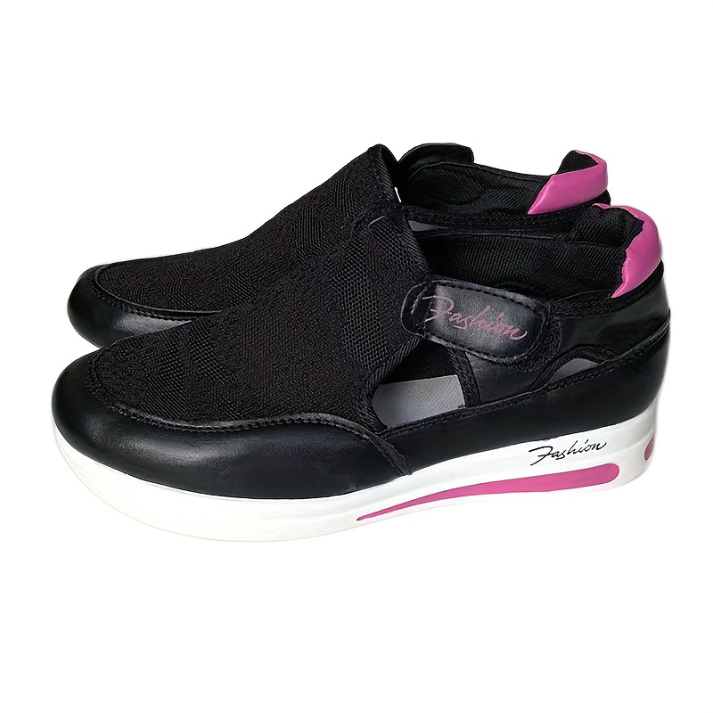 Women's Solid Color Platform Sneakers, Flying Woven Low Top Breathable Casual Shoes, Women's Comfy Shoes