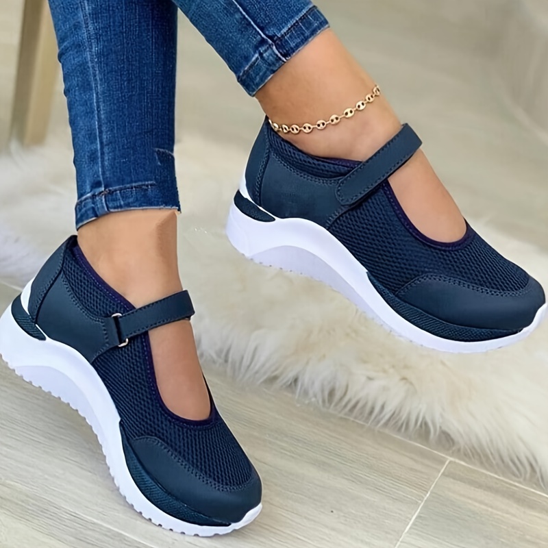 Women's Wedge Mesh Hollow Out Casual Shoes, Solid Color Hook And Loop Shoes, Breathable Walking Shoes